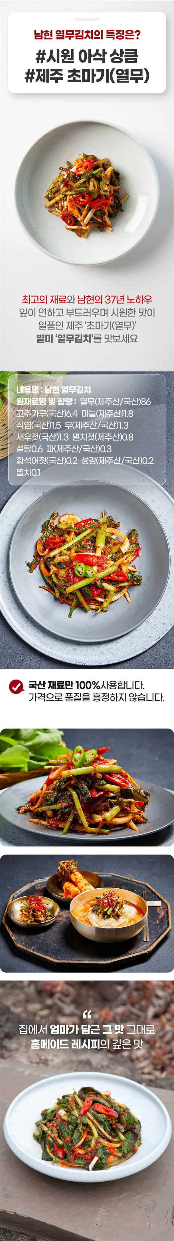 총각김치가 너무 맛이좋아 재구매합니다 아삭아삭 부드럽고 줄기도 질기지않고 깔끔하고 군더더기없는 . 감사합니다