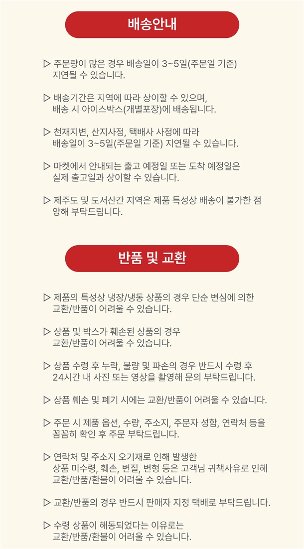 · 배송비 : 4,000원(3개 마다 기본배송비 반복 부과)