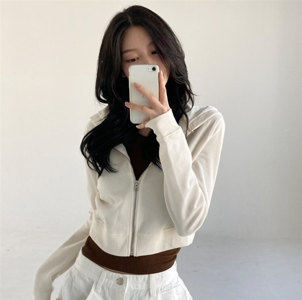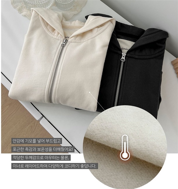 크롭 기모 후드 짚업