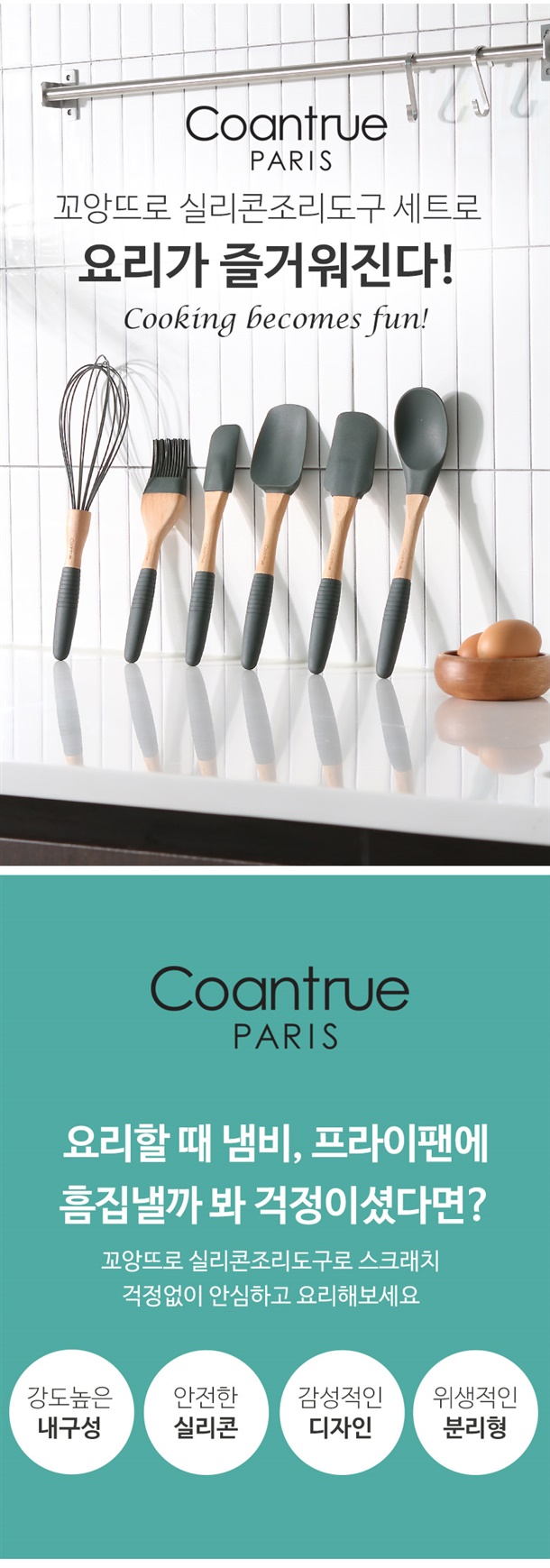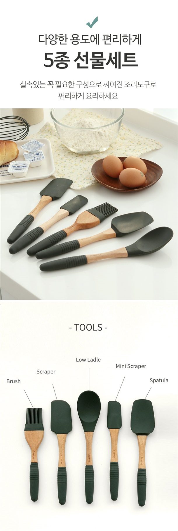#꼬앙뜨로 실리콘 조리도구 5종(선물박스) + 실리콘 거품기