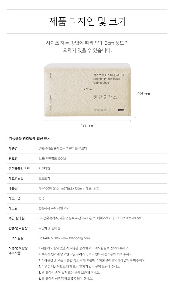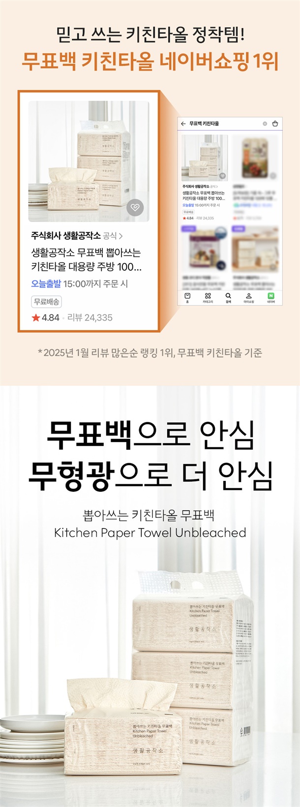 네이버 1위 무표백 키친타올!