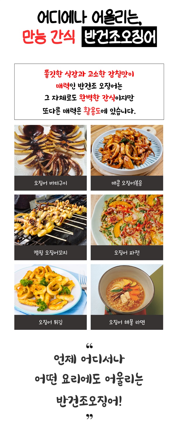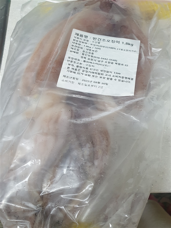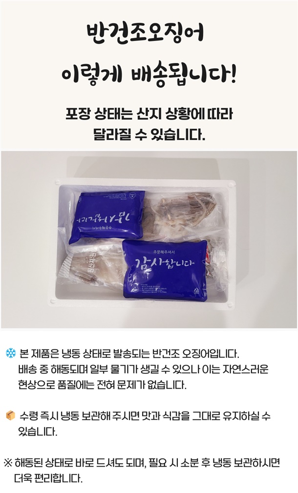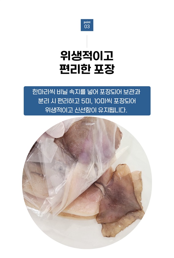 오징어 사이사이에 비닐막이 하나씩 들어있어서 고객입장에서 바라본 아이디어가 참신하단 생각을 하게됩니다 크기도 좋고 소분하기도 좋고~~
