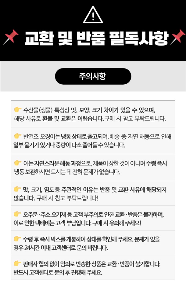 건어물을 식구대로 좋아해서 2세트..구매함 진짜 주인장 말처럼 사이즈도 크고 실~~하더라고요. 저는 칼집을 넣어서 에어에 구웠더니 대~~박!! 사실 구우면 쪼그라지고 작아지는데 에어에 구우니 괜찮더라구요..촉촉하기까지~~ 첫날 배송되자마자 3마리 순삭요~ 다음에도 구매의사100%..입니다~
